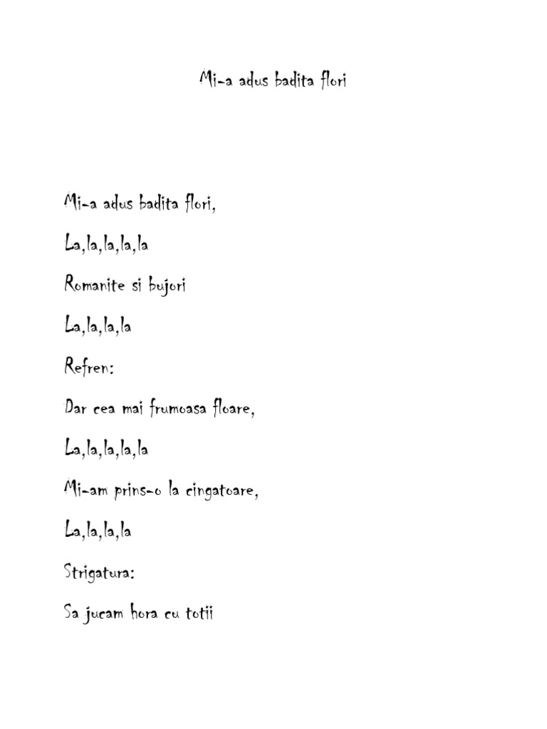 Cantecul Mi A Adus Badita Flori Versuri