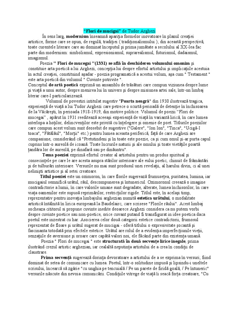 Demonstrati Ca Poezia Flori De Mucigai Apartine Modernismului