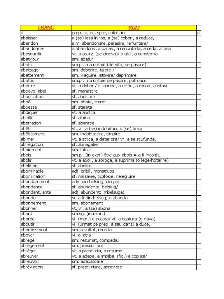 Cuvinte Uzuale In Franceza
