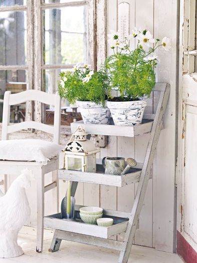 Suport Flori Din Scara Veche Lemn Pentru Terasa Stil Shabby Chic