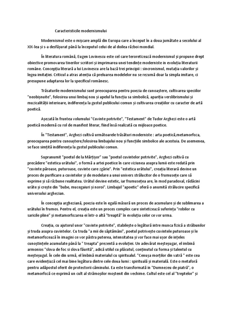 Trasaturile Modernismului In Flori De Mucigai
